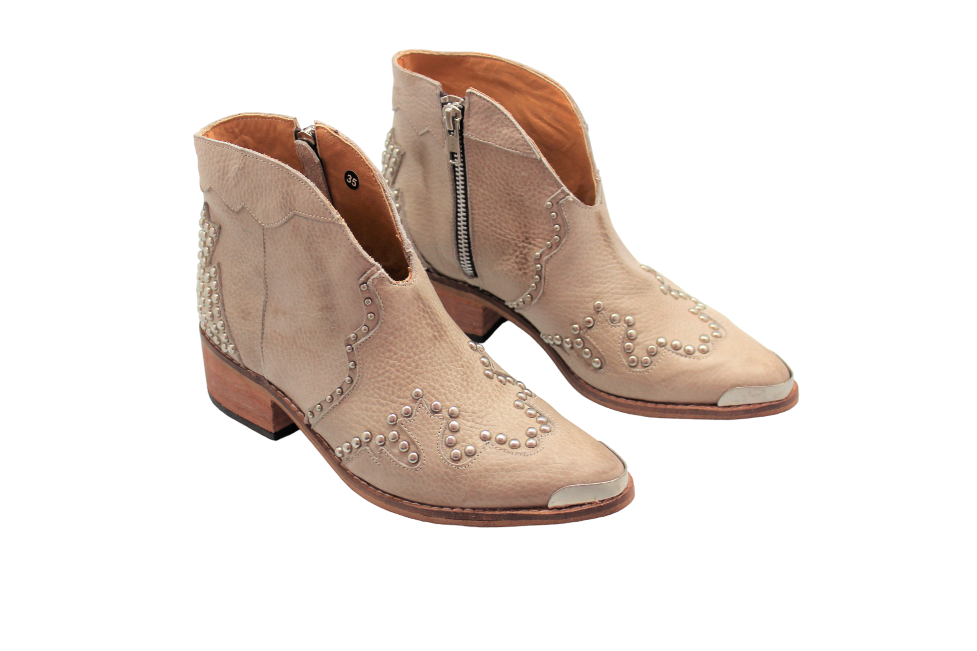 Botín de cuero con recortes y tachas – diseño argentino