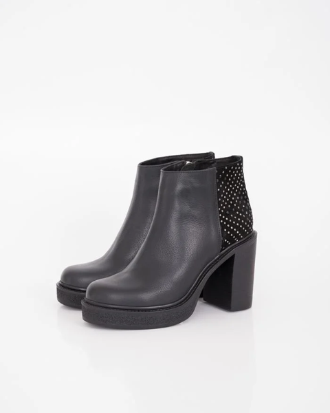 Elegancia y estilo en cada detalle. Este botín está confeccionado en cuero vacuno genuino, forrado en cuero para garantizar confort y durabilidad. Su detalle en talón de hotfix strass aporta sofisticación y personalidad, mientras que el cierre interno al tono facilita el calce sin perder estética.