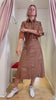 Su diseño evasé con recortes aporta movimiento y elegancia, mientras que los broches metálicos color oro viejo en la parte frontal permiten abrir o cerrar la prenda según tu estilo.