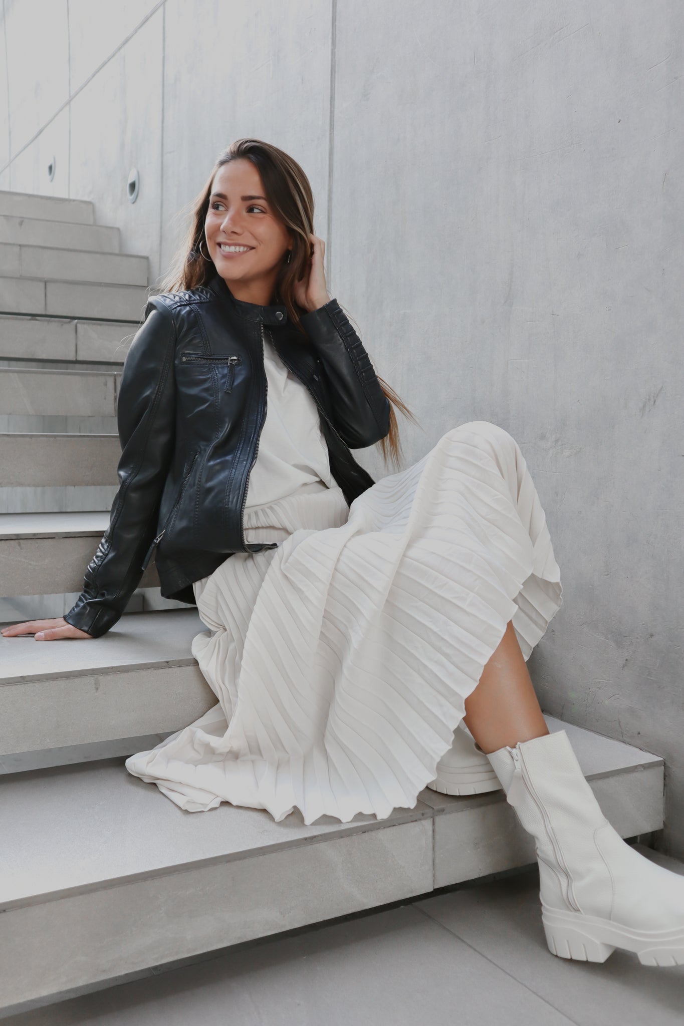 Descubrí la elegancia y autenticidad del diseño vanguardista con la chaqueta ALMA PAMPA, confeccionada en cuero de oveja 100% premium.