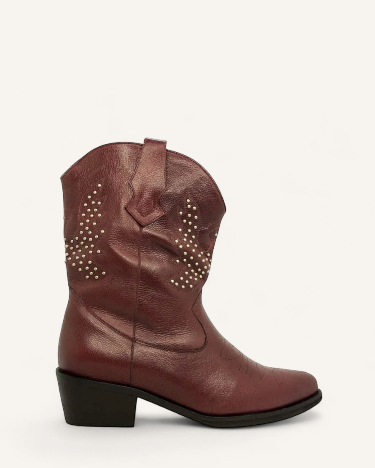 • Estilo vaquero 3/4 con costuras y tachas en forma de alas