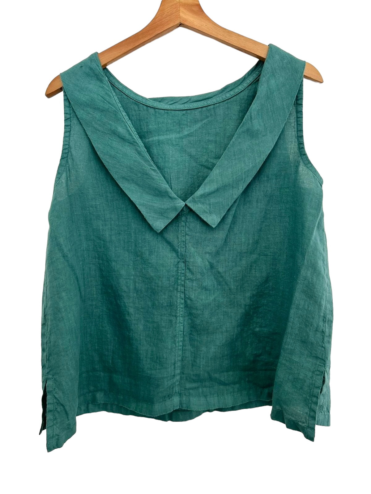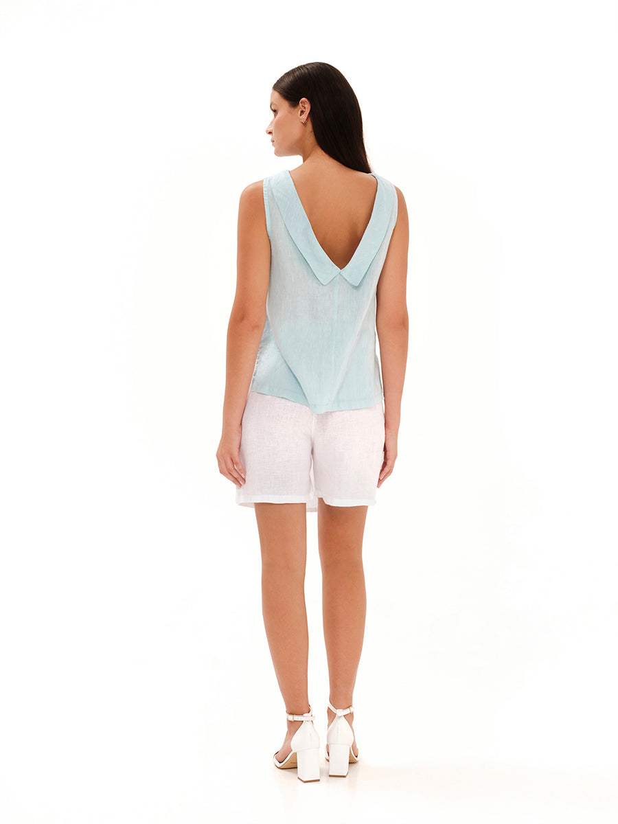 Blusa 100% lino sin mangas con escote bote y espalda en V