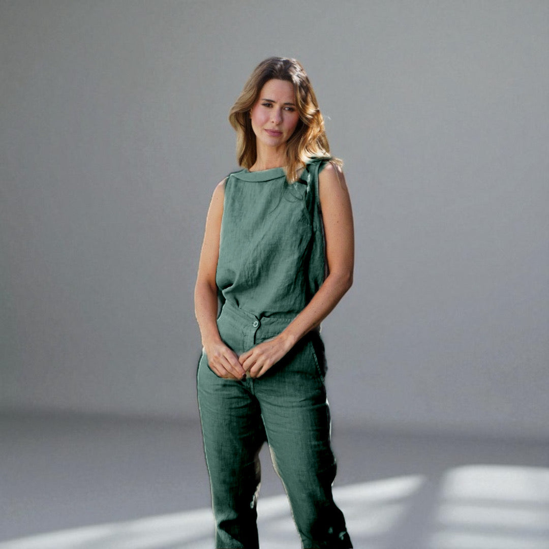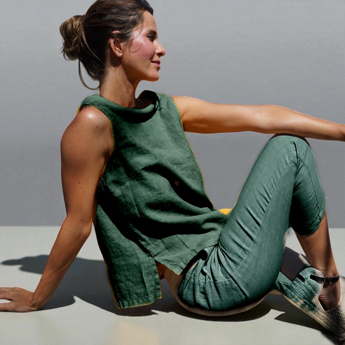 • Blusa 100% lino sin mangas con escote bote y espalda en V