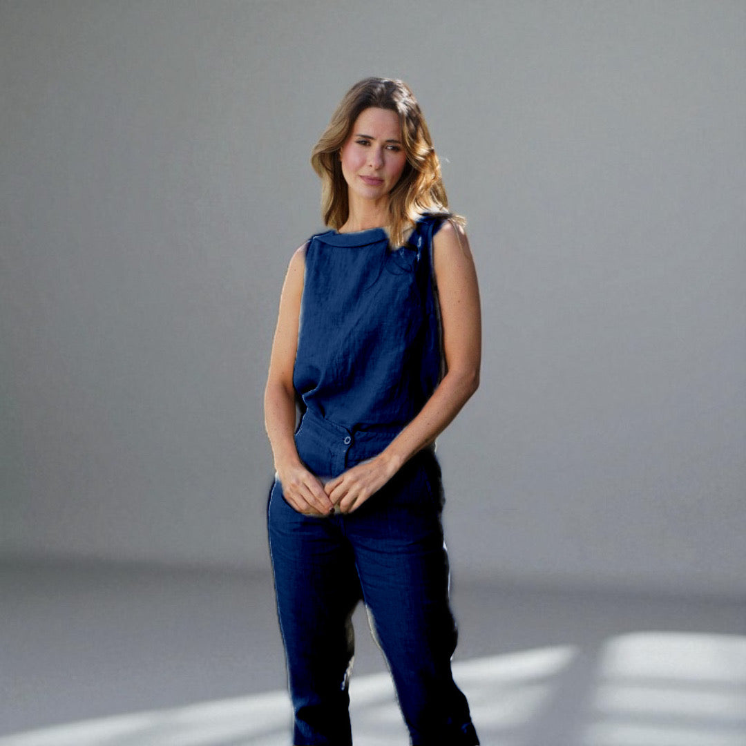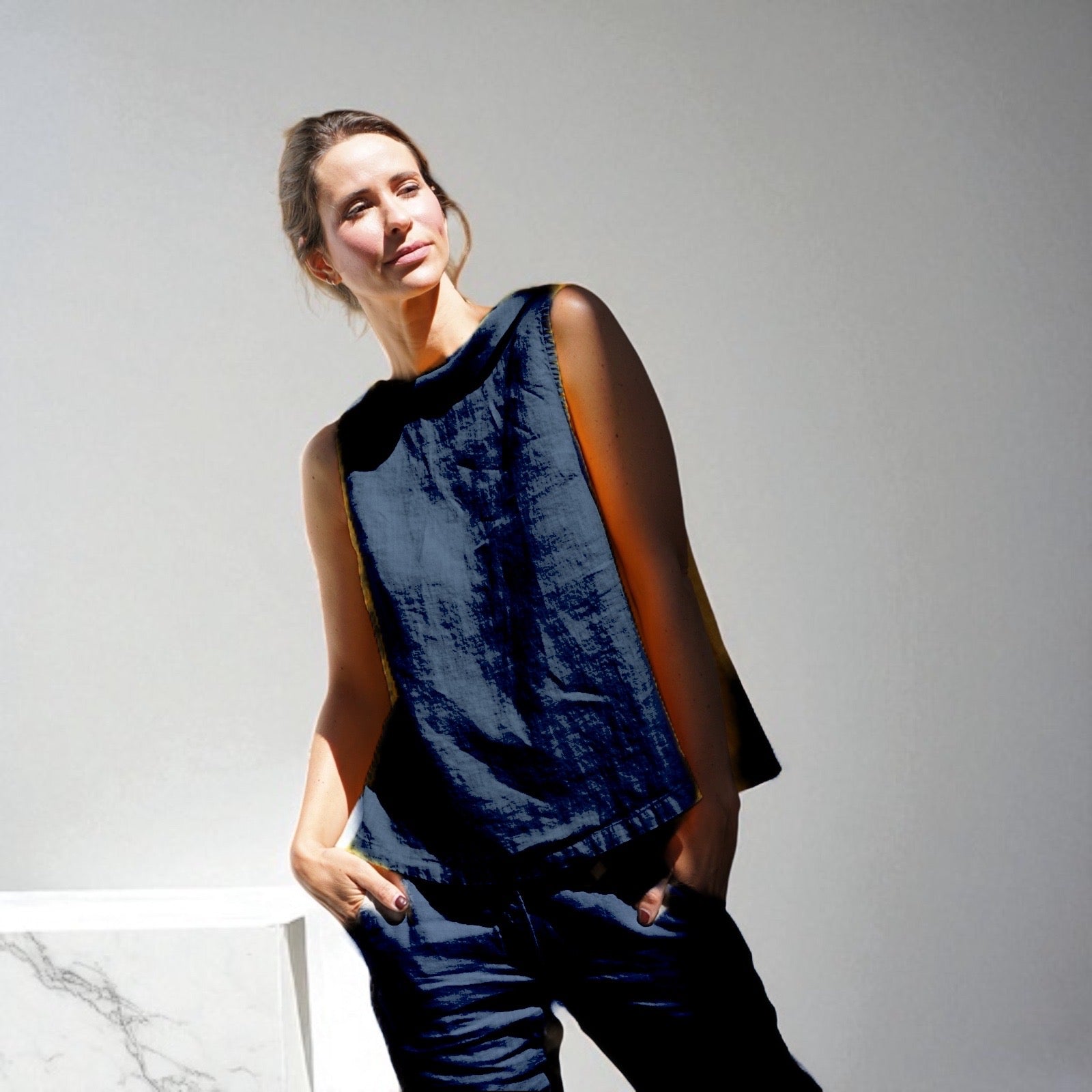 Blusa 100% lino sin mangas con escote bote y espalda en V