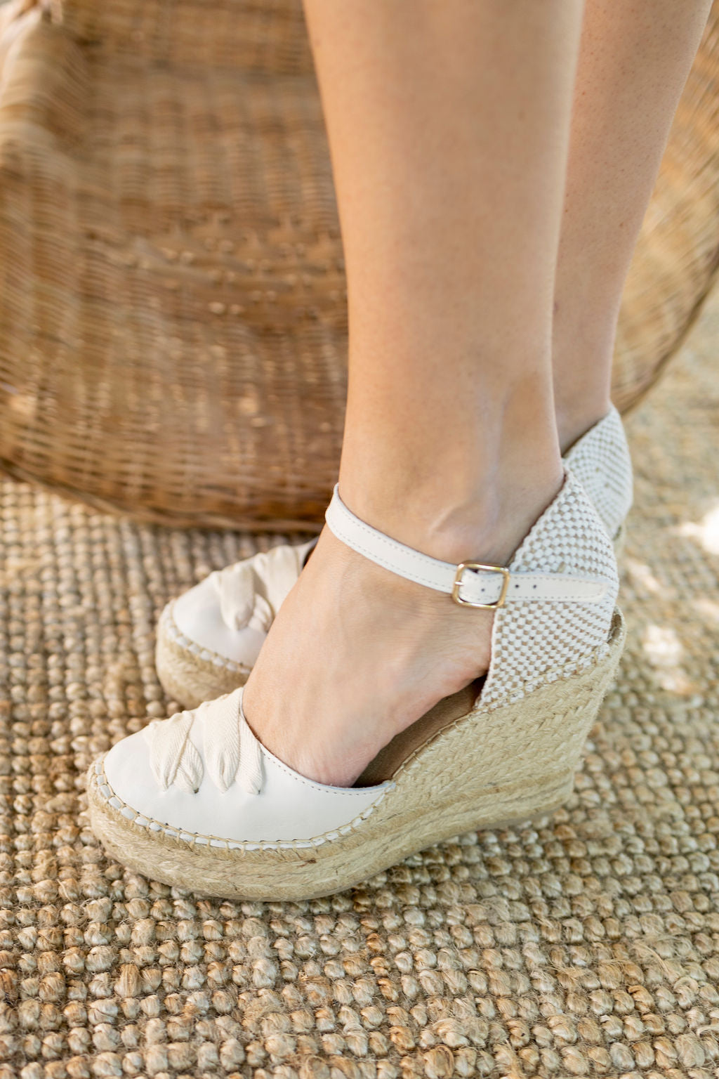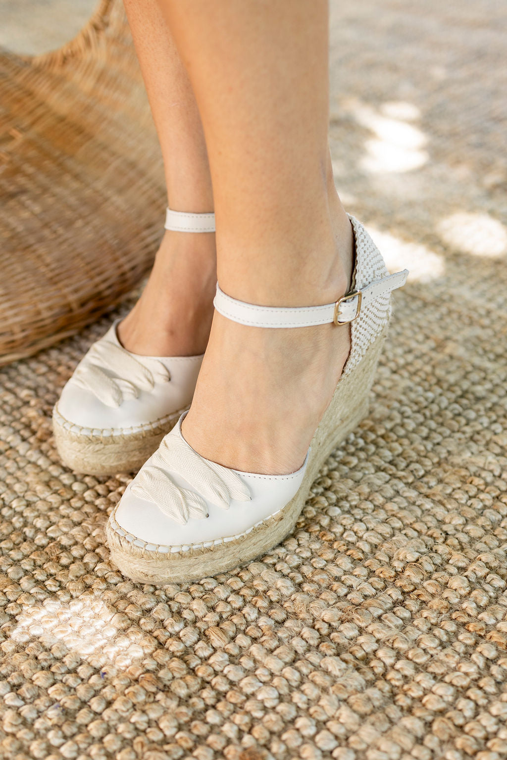 Elegancia y tradición se unen en esta alpargata de cuña de yute natural cosida a mano, con horma redonda y un acabado que realza cualquier look.