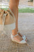 • Cierre de cordón en cuero con herrajes metálicos dorados