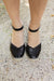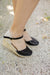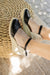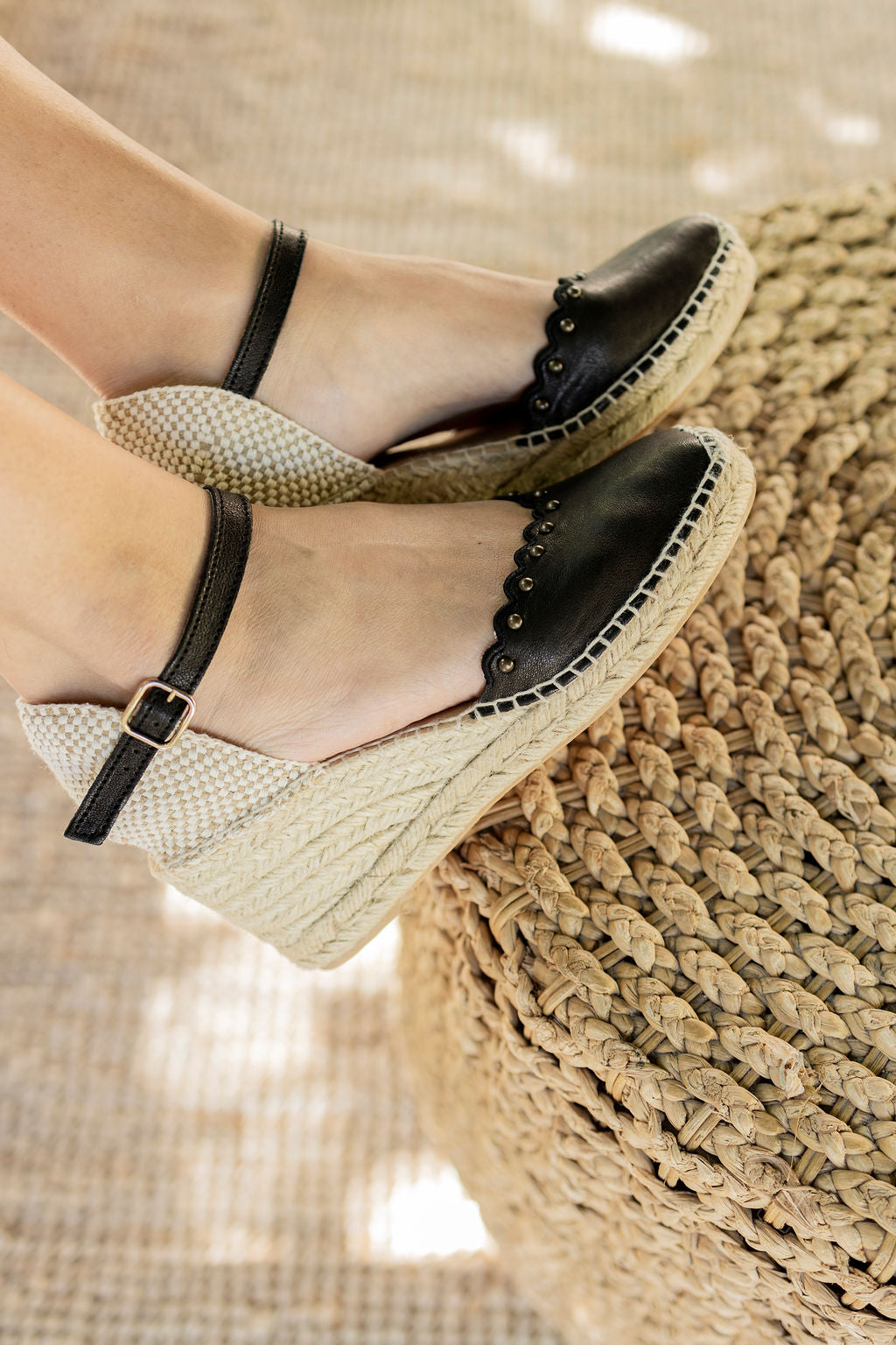 Confeccionada en cuero italiano con un elegante diseño de ondas y detalles de tachas, esta alpargata es perfecta para darle un toque moderno y sofisticado a tus looks.