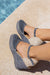 Su base de yute natural cosida a mano refleja la esencia mediterránea, mientras que su altura de 9 cm atrás y 2,5 cm adelante estiliza la silueta sin renunciar a la comodidad.