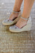 Su base de yute natural cosida a mano refleja la esencia mediterránea, mientras que su altura de 9 cm atrás y 2,5 cm adelante estiliza la silueta sin renunciar a la comodidad.