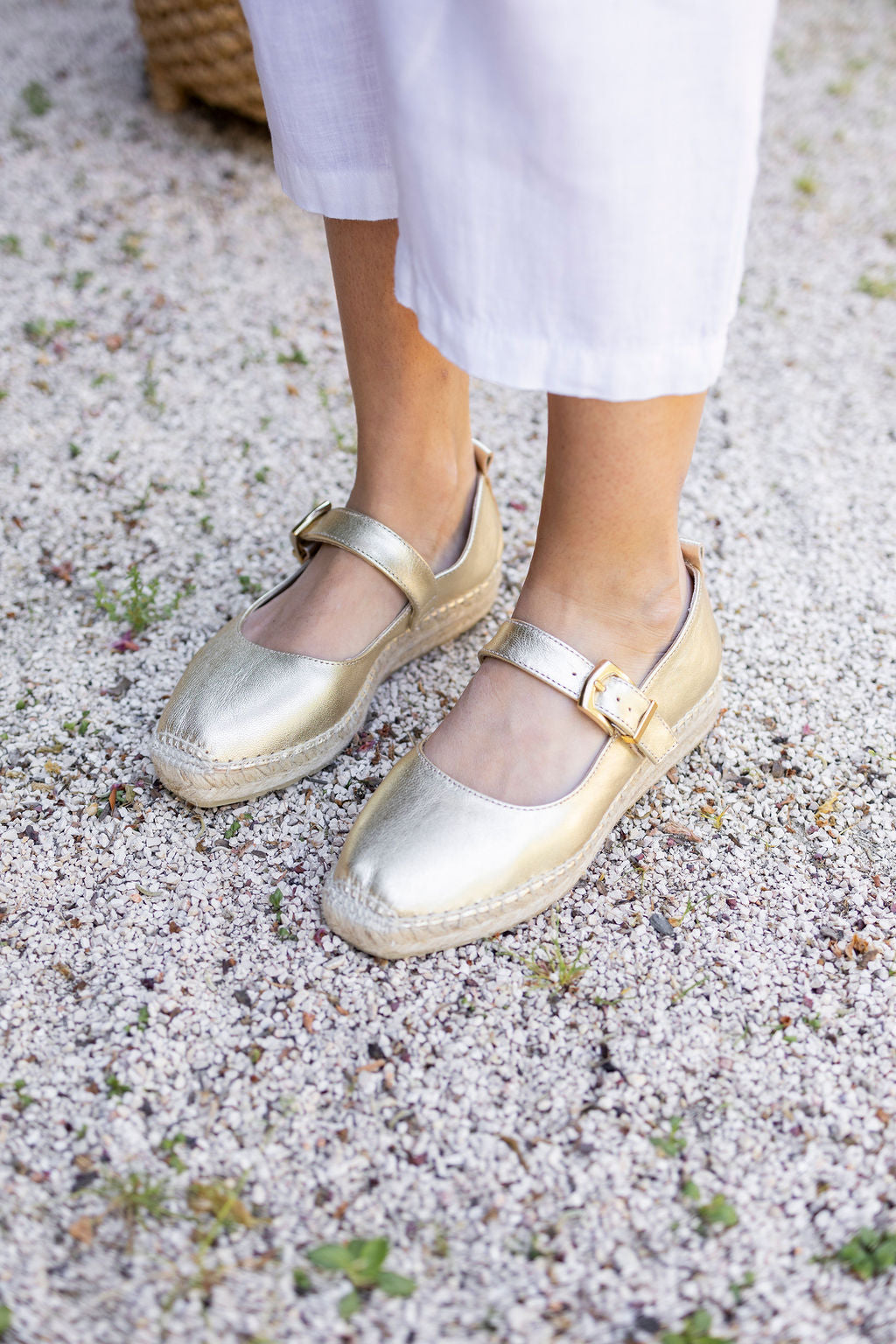 Su base de yute 100% natural cosida a mano con planta de goma antideslizante garantiza resistencia y seguridad en cada paso.