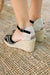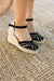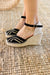 Su base de yute natural cosida a mano refleja la tradición mediterránea, mientras que la altura de 9 cm atrás y 2,5 cm adelante estiliza la silueta sin renunciar al confort.
