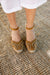 Su base de yute natural cosida a mano refleja la tradición mediterránea, mientras que la altura de 9 cm atrás y 2,5 cm adelante estiliza la silueta sin renunciar al confort.