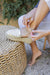 El cierre con pulsera de cuero brinda sujeción elegante y el talón en algodón 100% garantiza frescura y transpirabilidad.