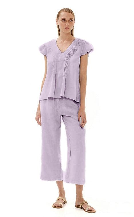 Pantalón 100% lino con cintura elastizada y cropped.