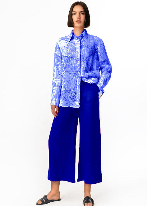 Pantalón 100% lino corte pierna ancha con cintura elastizada y cordón.