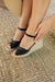 La base de yute natural cosida a mano refleja la tradición mediterránea, mientras que su altura equilibrada de 8 cm atrás y 2,5 cm adelante estiliza la figura sin renunciar a la comodidad.