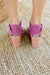 Fabricada en gamuza de alta calidad, destaca por su delicada apertura frontal en forma de mariposa, un detalle único que aporta ligereza y sofisticación.